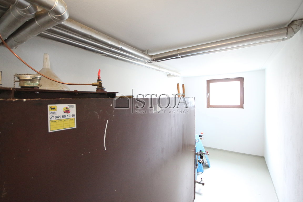 The semi-basement includes an entrance hall, a storage room under the stairs, a heating oil boiler and a space for a cistern.