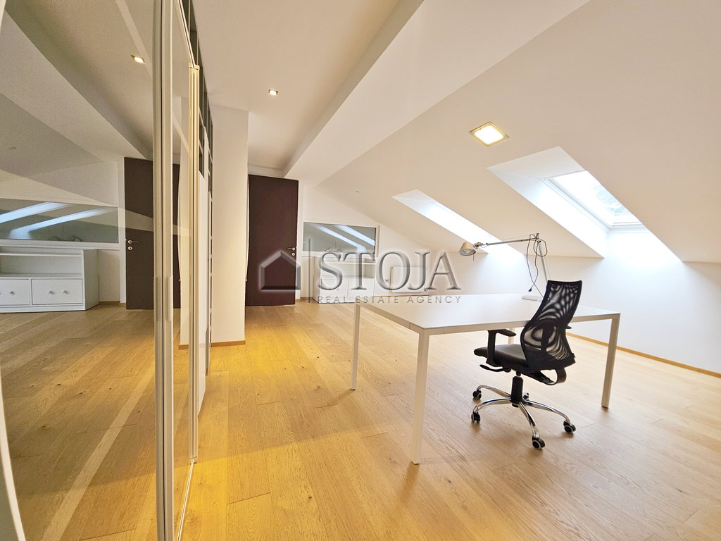 We are renting a house with a large and beautifully maintained garden that ensures complete privacy, featuring a 13.5-meter-long swimming pool and a separate multipurpose/garage building. The property is located in an excellent urban location in Vič.