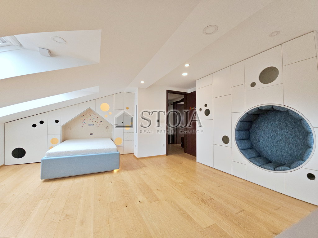 The house offers plenty of living space and adapts to various lifestyles. In addition to a large open living area, it includes 5–6 bedrooms, multiple bathrooms, recreational areas, a sauna, a workshop/hobby room, etc. Due to its flexible design, it is also suitable for protocol purposes, as it allows separation of reception and private use areas.