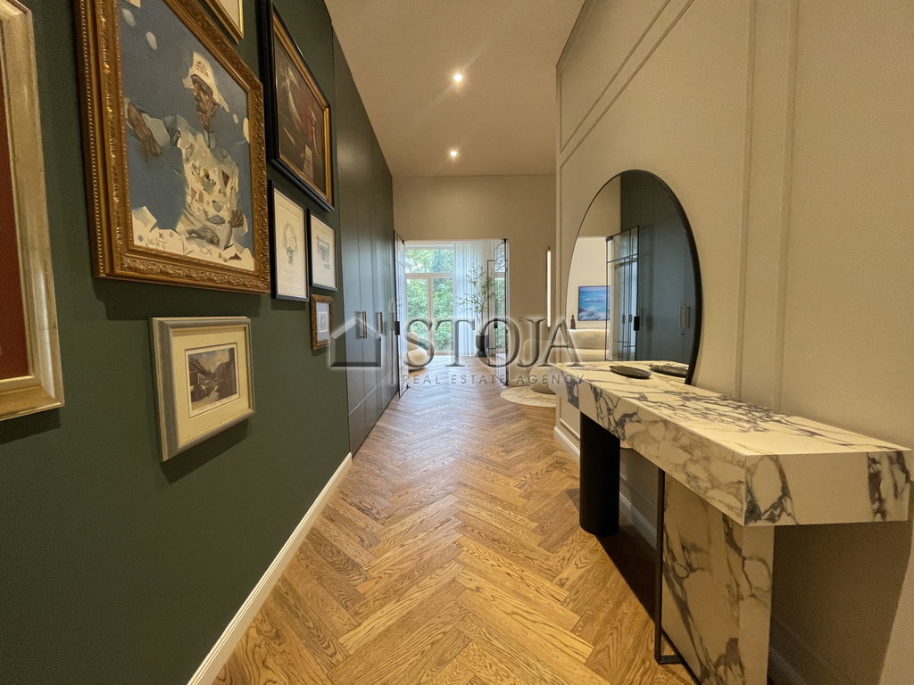 The design of this apartment was inspired by Parisian charm, as known from luxurious residences in the heart of Paris. The interior combines top-quality pieces from renowned European manufacturers with unique creations by the best Slovenian craftsmen – carpenters, stonemasons, glassmakers, and artists.