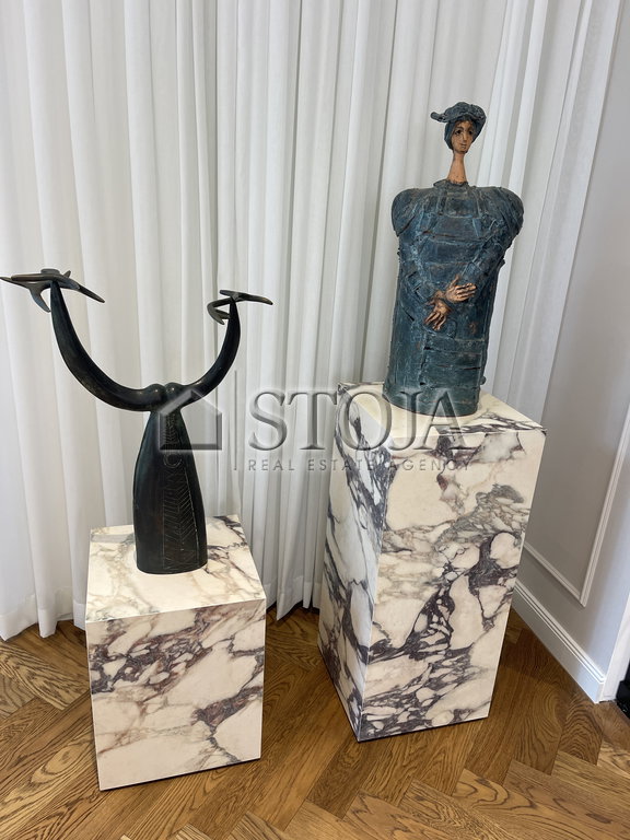 The apartment is adorned with a rich collection of artworks by renowned Slovenian academic painters – Boris Zaplatil, Rudi Španzl, Viktor Šest, Narcis Kandžarđić, Milan Todić, Tomaž Kržišnik, Zlatko Prah, and others. Each room is enriched with selected decorative pieces, as well as porcelain and crystal in the kitchen.