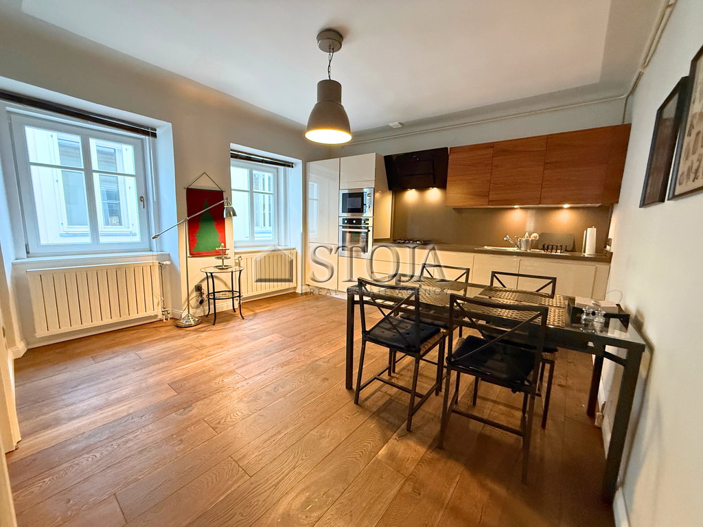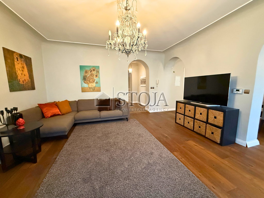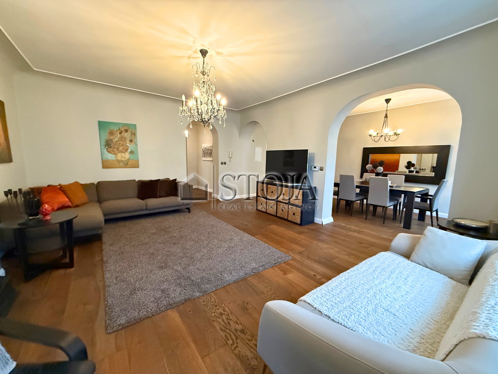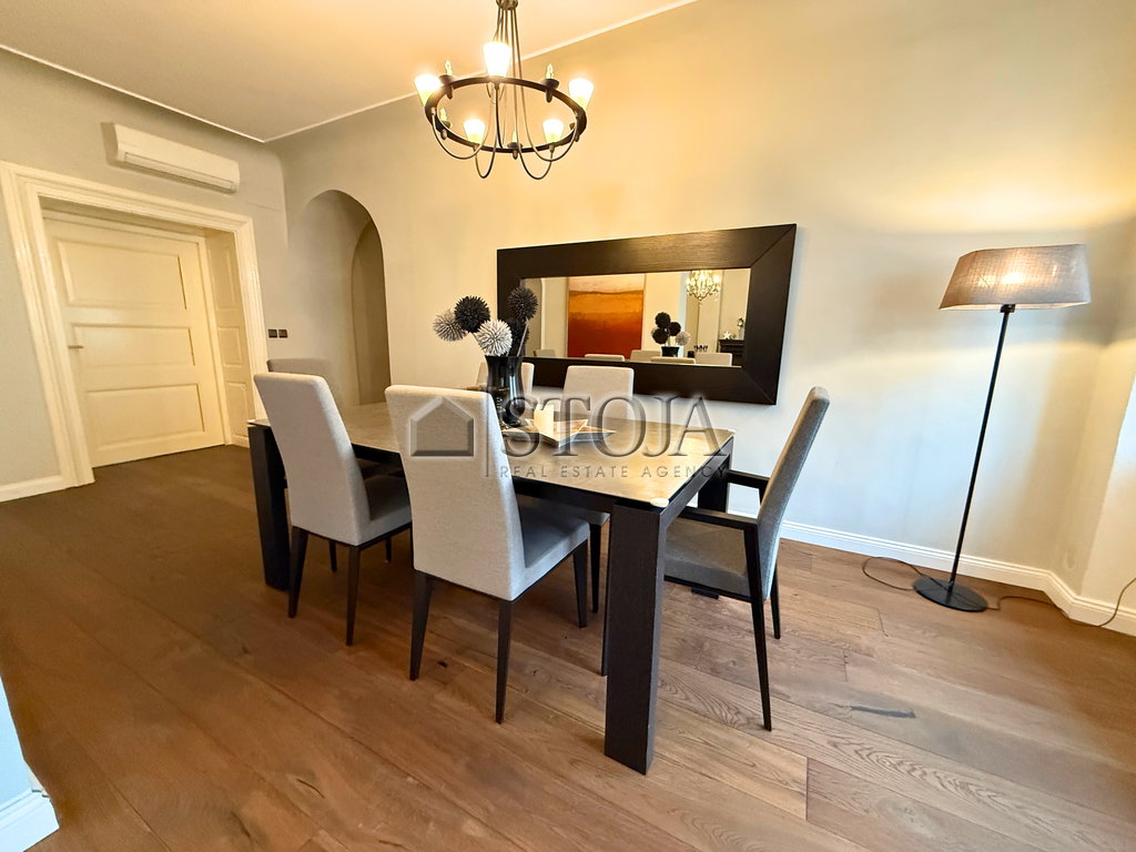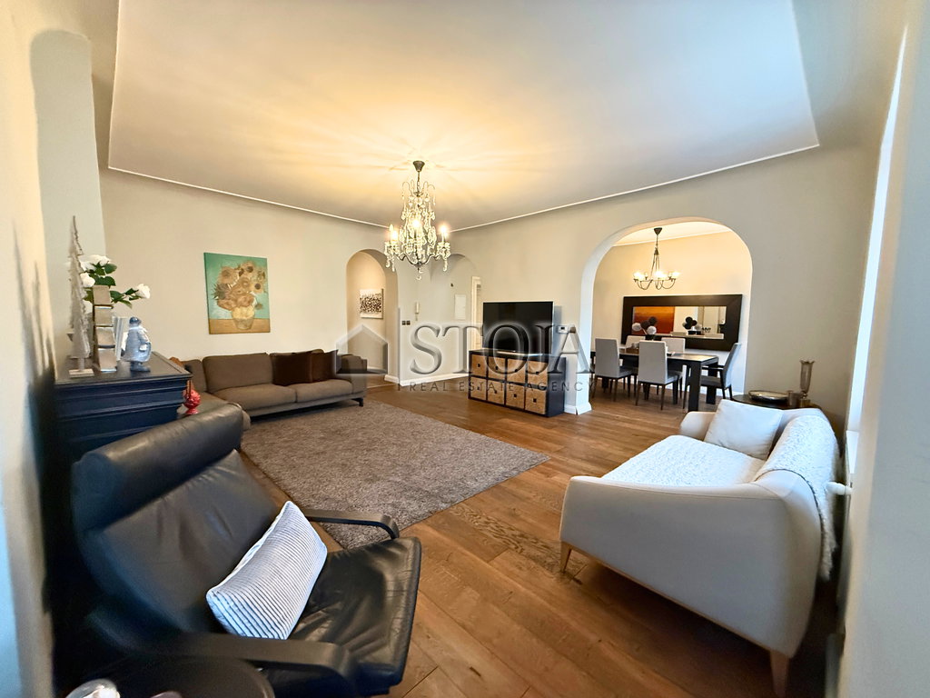 In an exceptional location in the city center, a spacious and elegant bourgeois apartment is available, combining classic charm with modern comfort. The apartment is bright, functionally designed, and furnished with high-quality pieces of furniture.