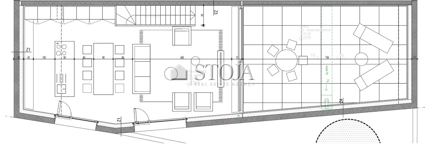 - The tenant assumes payment of part of the additional services, i.e., the preparation of the lease agreement, which includes the following actions by the agent: execution of the property handover and preparation of the minutes, assistance with subscription transfers, preparation and storage of photographic material, in accordance with the price list stated in the general terms and conditions of the real estate company, so that the tenant pays a one-time amount for additional services of 3,500 EUR plus 22% VAT, totaling 4,270 EUR, based on the advertised rent and lease duration. VAT is charged only on additional services, not on the rent!