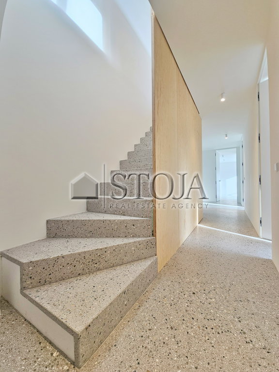 The apartment is still being finished and furnished with a kitchen, a large wardrobe in the hallway which will be integrated into the walnut wood railing on the staircase, adding a contrasting warmth to the space. Expected move-in date February 2026.In the highly sought-after location of Vič-Rudnik, Rožna dolina, a spacious 4-room apartment with a total area of 120 m² is available for rent. It is situated on the first floor of a two-story building constructed in 2025.