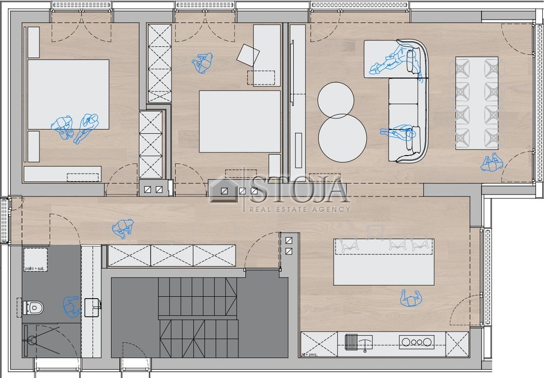 Bathroom furniture, kitchen, and built-in wardrobes will be installed; the tenant is generally expected to provide the remaining furniture themselves.
