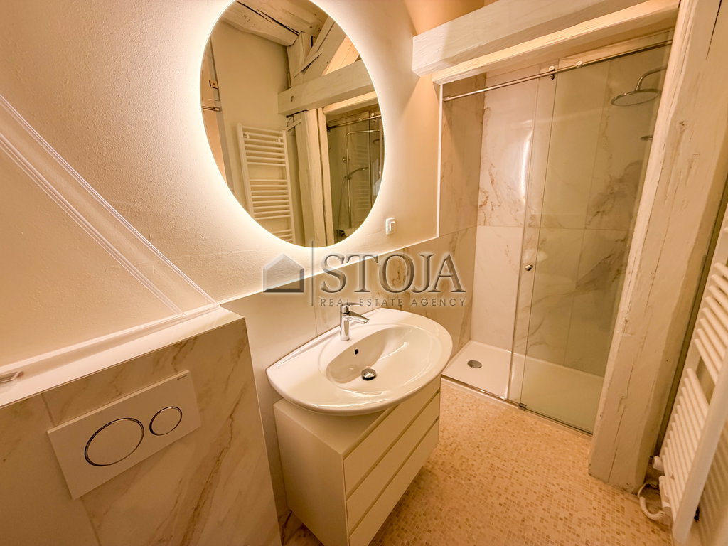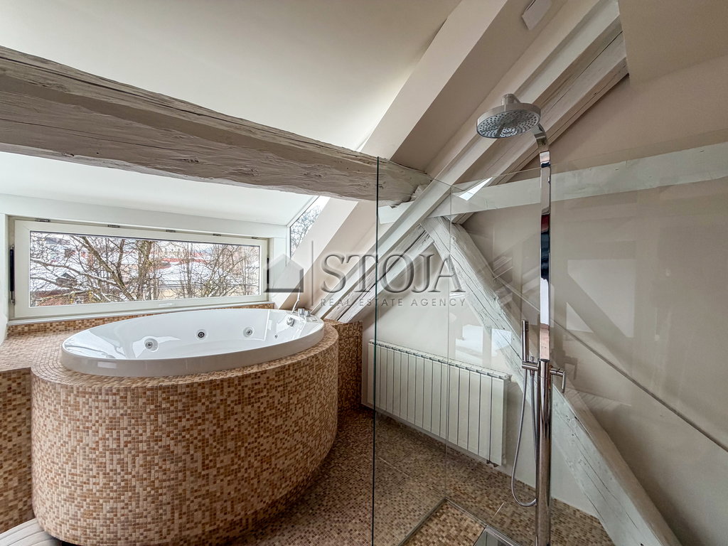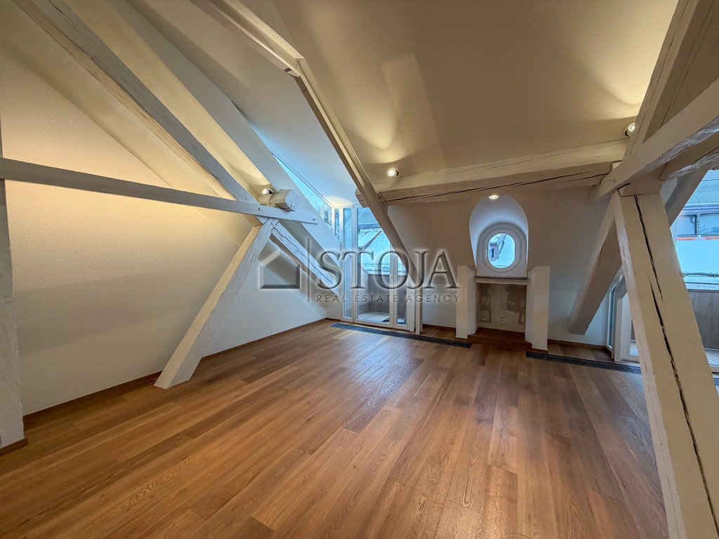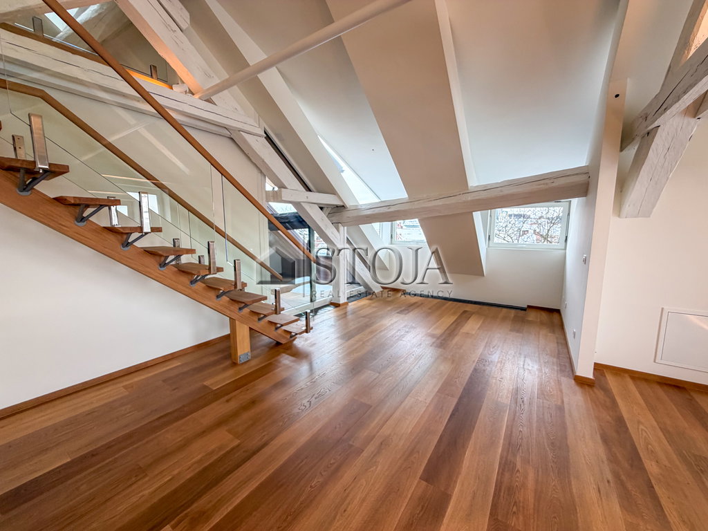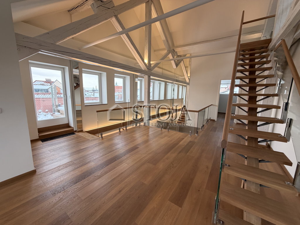 In the old town center, near Šuštarski Bridge, we offer for rent a fully renovated triplex apartment in a well-maintained bourgeois building with an elevator.