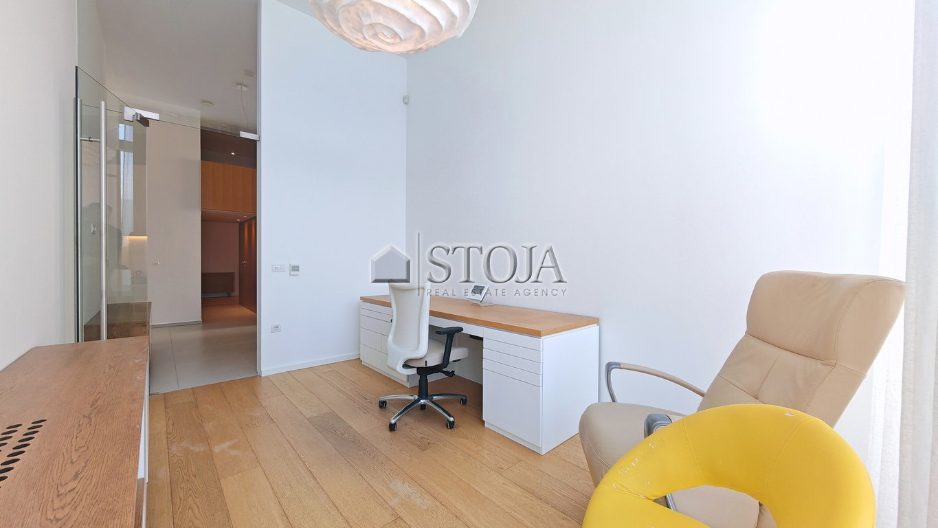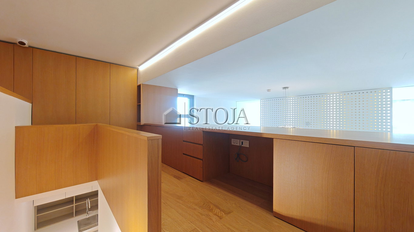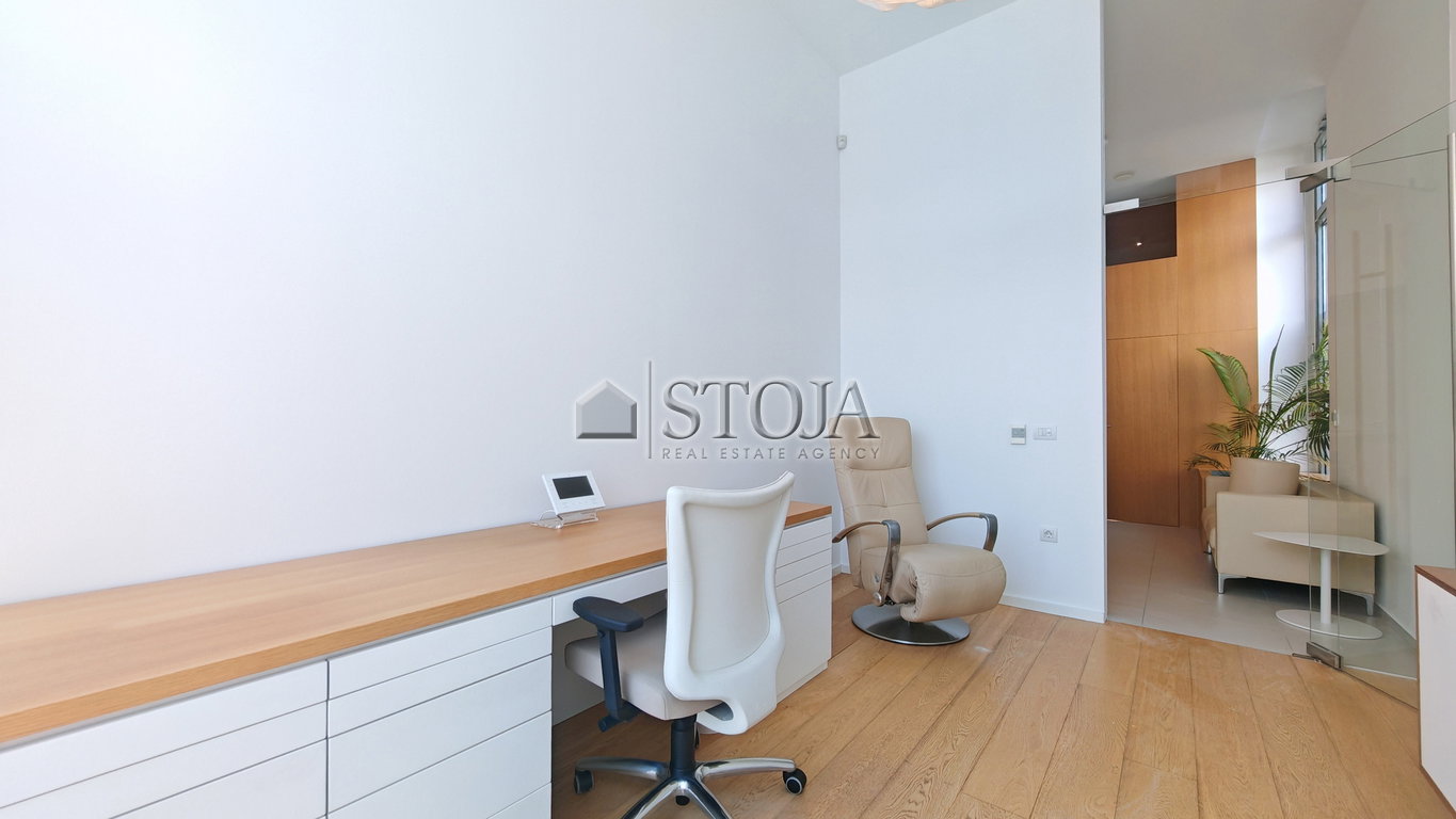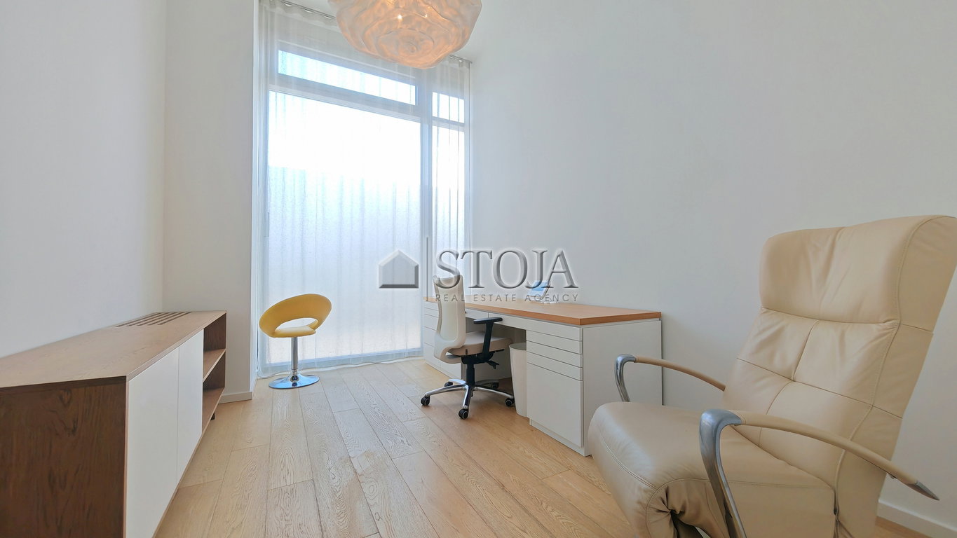 The offices feature good visibility from the passing road, custom-made equipment, ample storage cabinets, high ceilings (3.7 m), central heating and cooling, disabled access, central ventilation with heat recovery, easy access from the highway, etc.