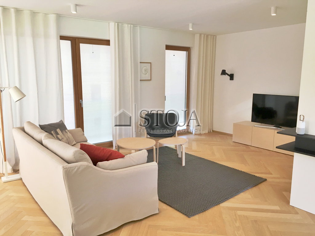 The apartment is designed for various tenant profiles, as it has three bedrooms, allowing comfortable living for a smaller or larger family, an older couple, retirees, businesspeople, as well as consulates and diplomats. The space is exceptionally bright, which further emphasizes the feeling of openness and comfort.