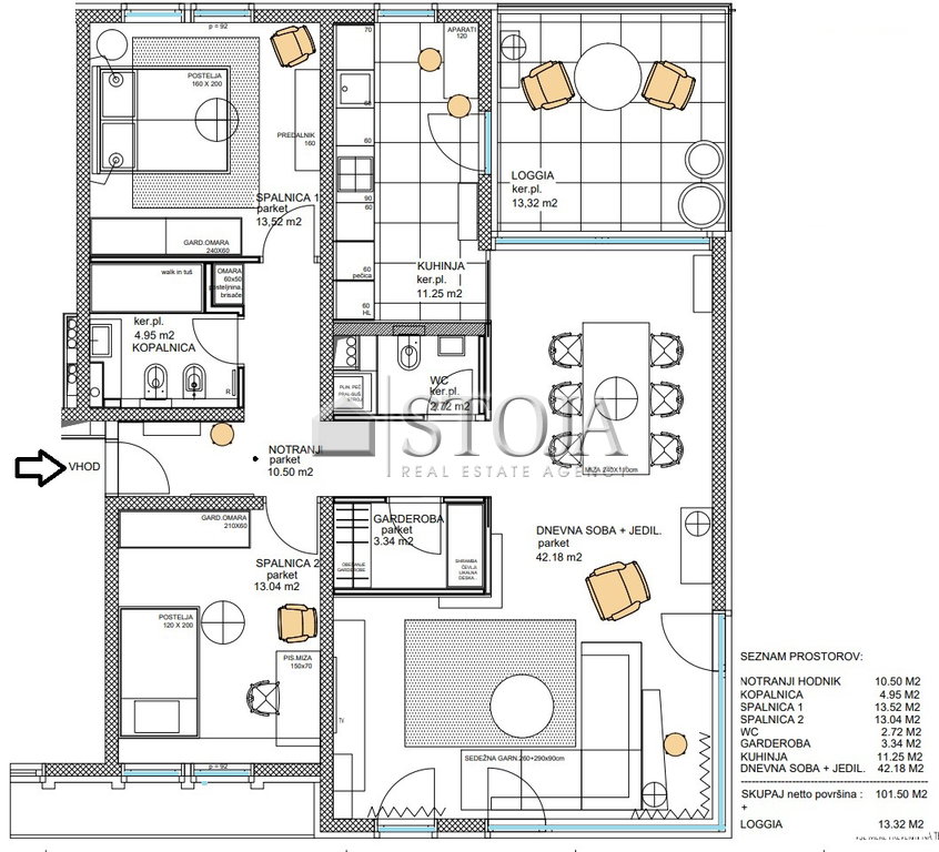 - The tenant assumes payment of part of the additional services, i.e., drafting the lease agreement, which includes the following actions by the agent: execution of the property handover and preparation of the handover report, assistance with subscription transfers, preparation and storage of photographic material, in accordance with the price list stated in the general terms and conditions of the real estate company, so that the tenant pays a one-time fee for additional services of 2,700 EUR plus 22% VAT, totaling 3,294 EUR, VAT is charged only on additional services, not on the rent!