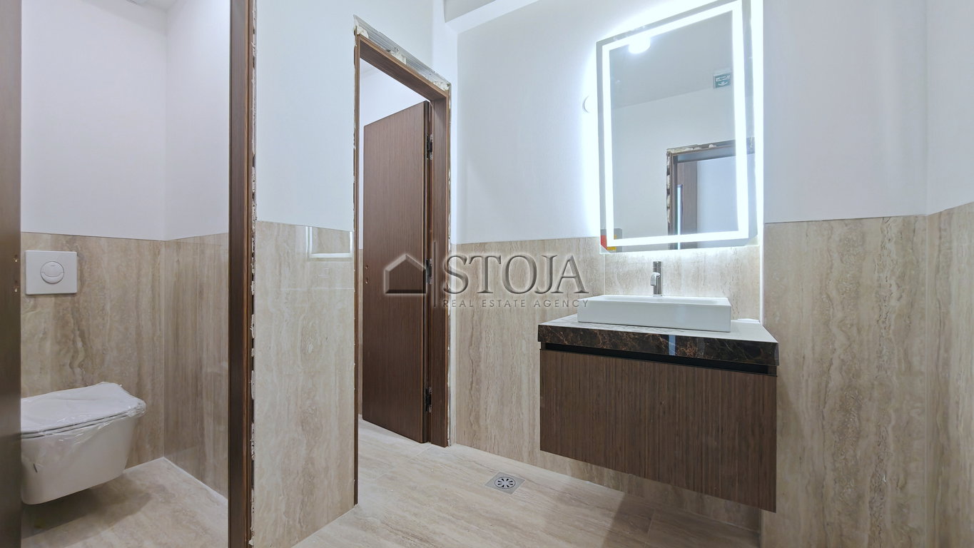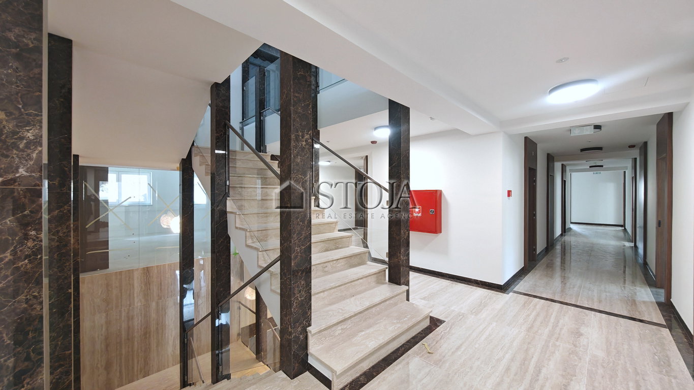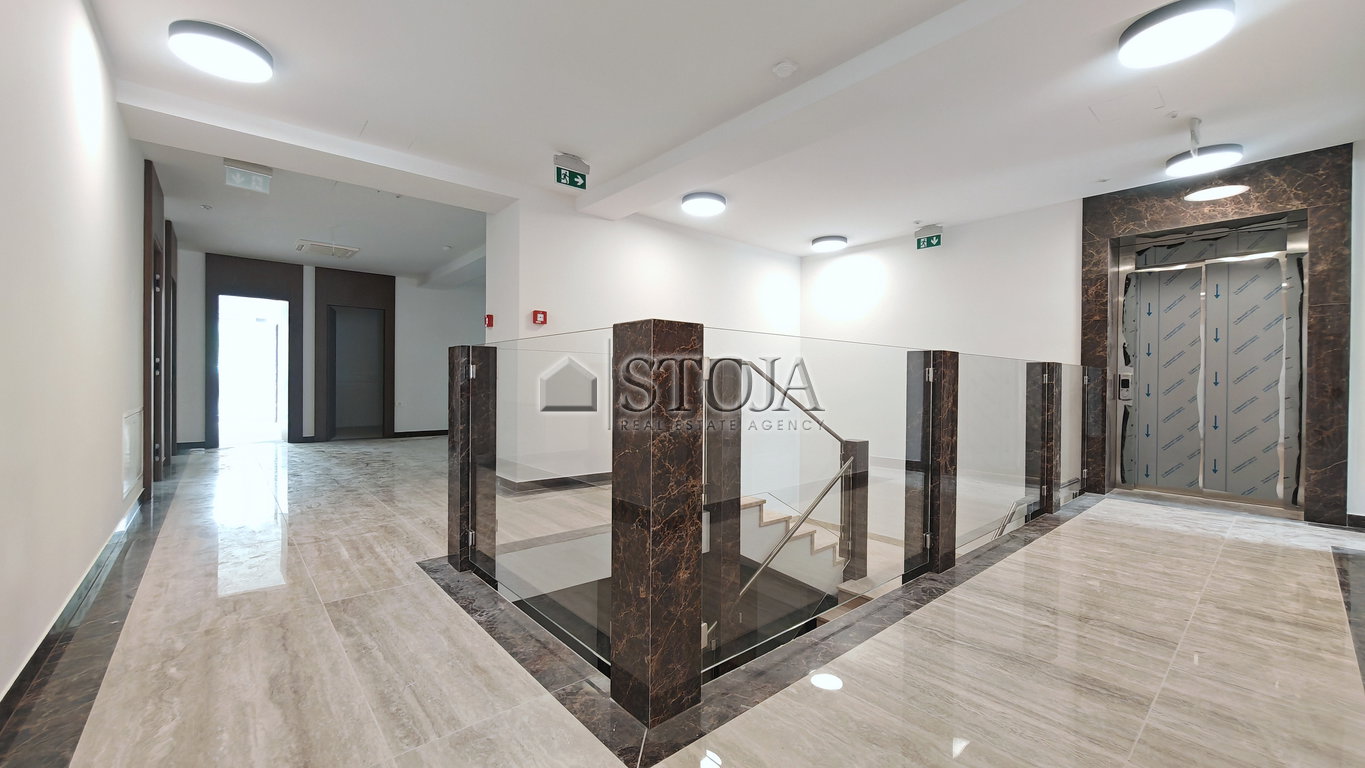Stavba se ponaša z modernim izgledom, alarmnim in video-nadzorom, veliko steklenimi površinami, visokimi stropi (cca. 3m) ter optično internetno povezavo.