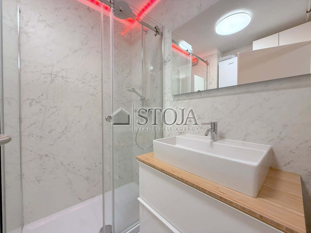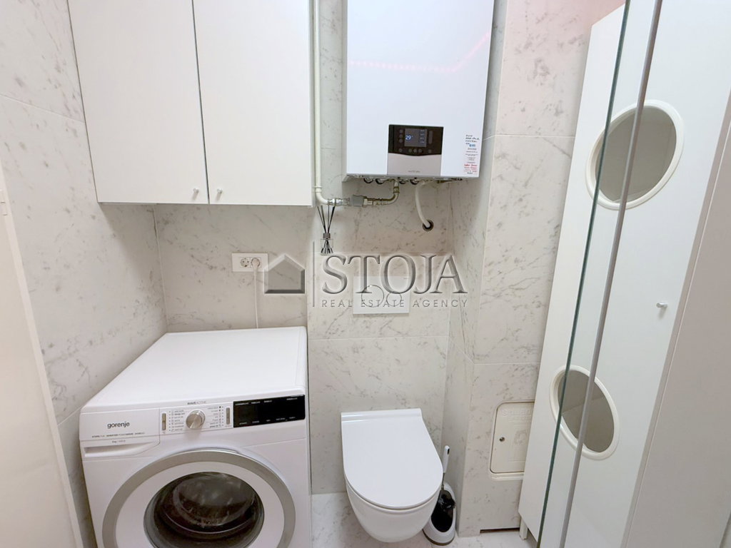 Stanovanje je opremljeno s kuhinjskimi aparati, pomivalnim in pralnim strojem, posteljo, sedežno garnituro ter klimatsko napravo. Orientacija proti jugozahodu zagotavlja veliko naravne svetlobe.