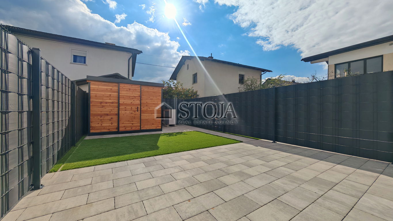 Zunaj je predvideno parkiranje za 2 avtomobila in vrtna hiška za shranjevanje.