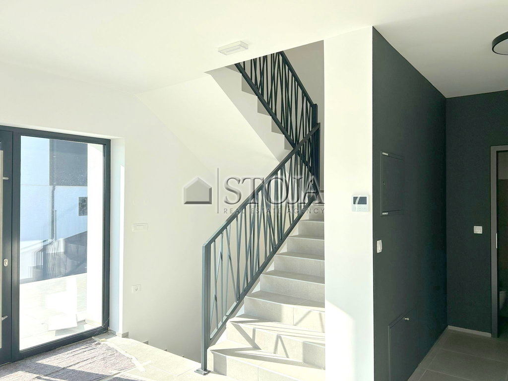 Velikost 215m2 predstavlja skupaj; 119 m2 v pritličju in 96 m2 v prvem nadstropju .