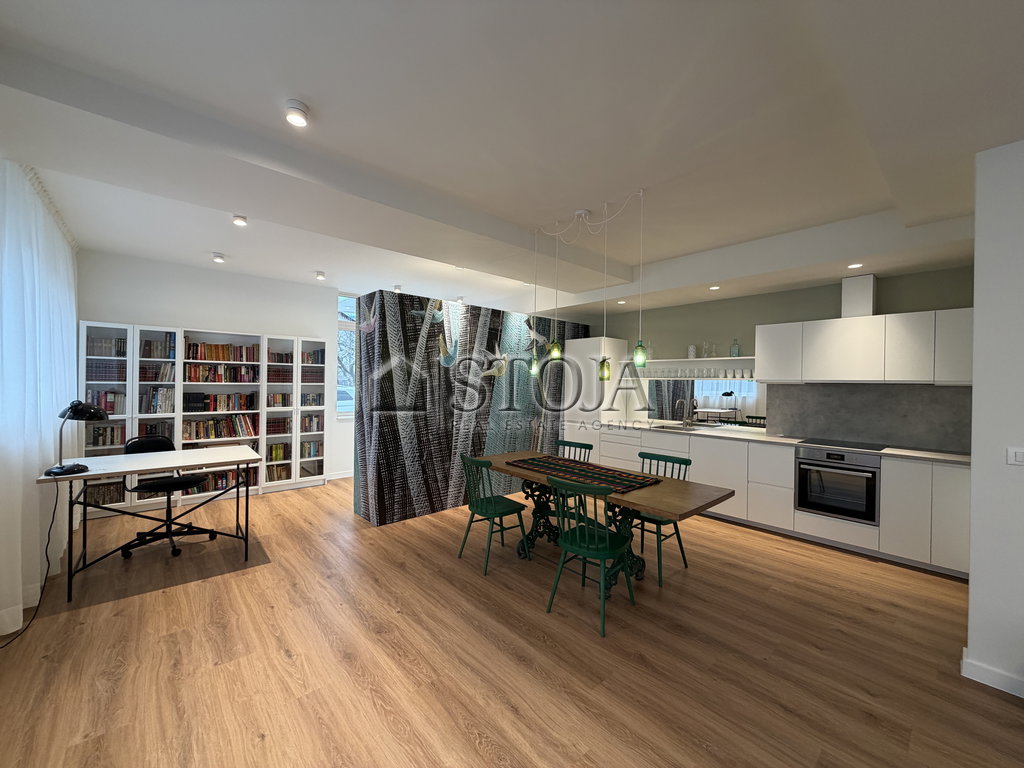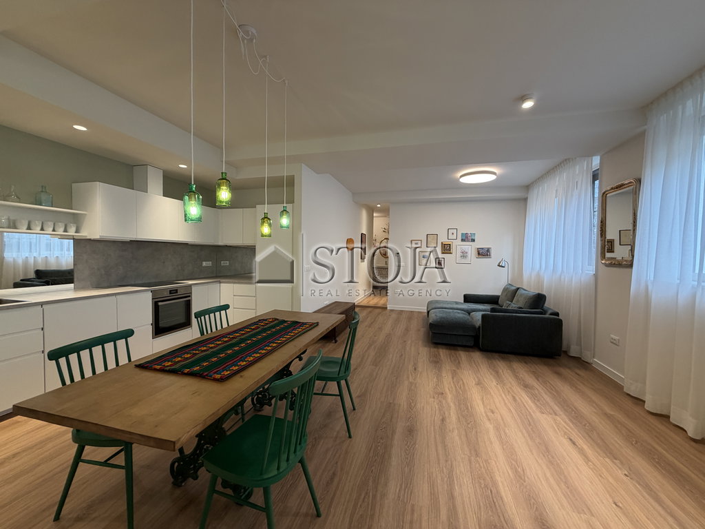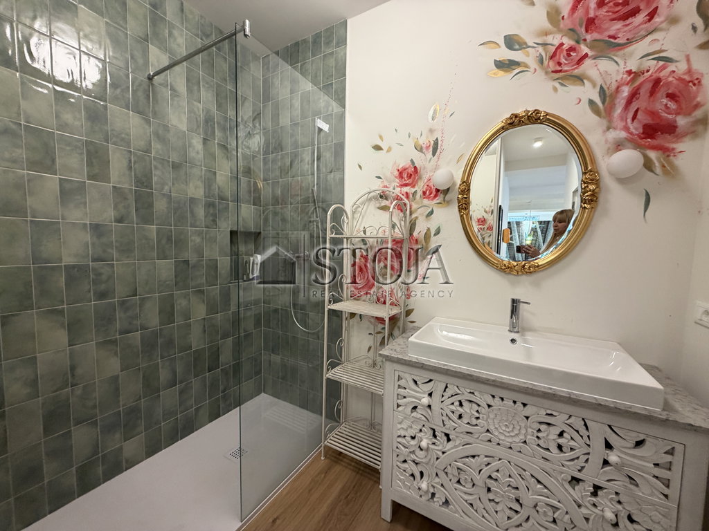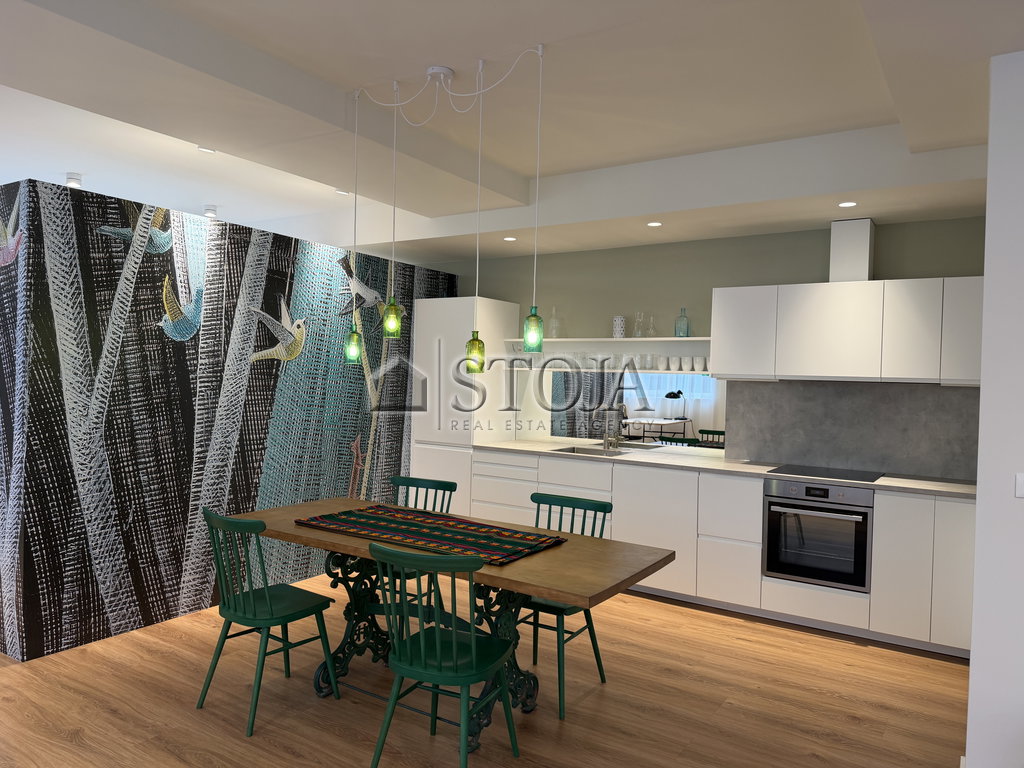 - Opremljeno s kuhinjo z aparati ter vso ostalo pohištvo razen televizije